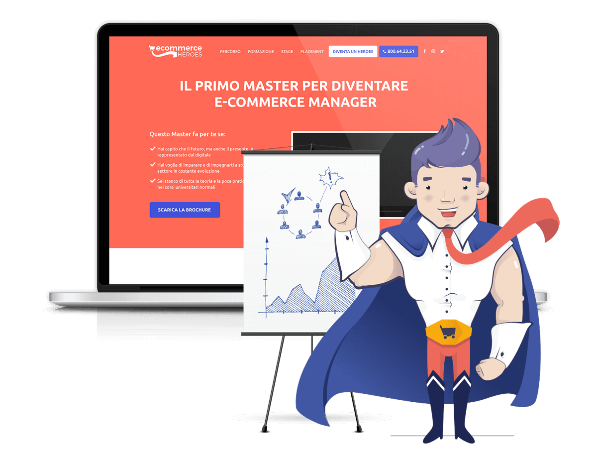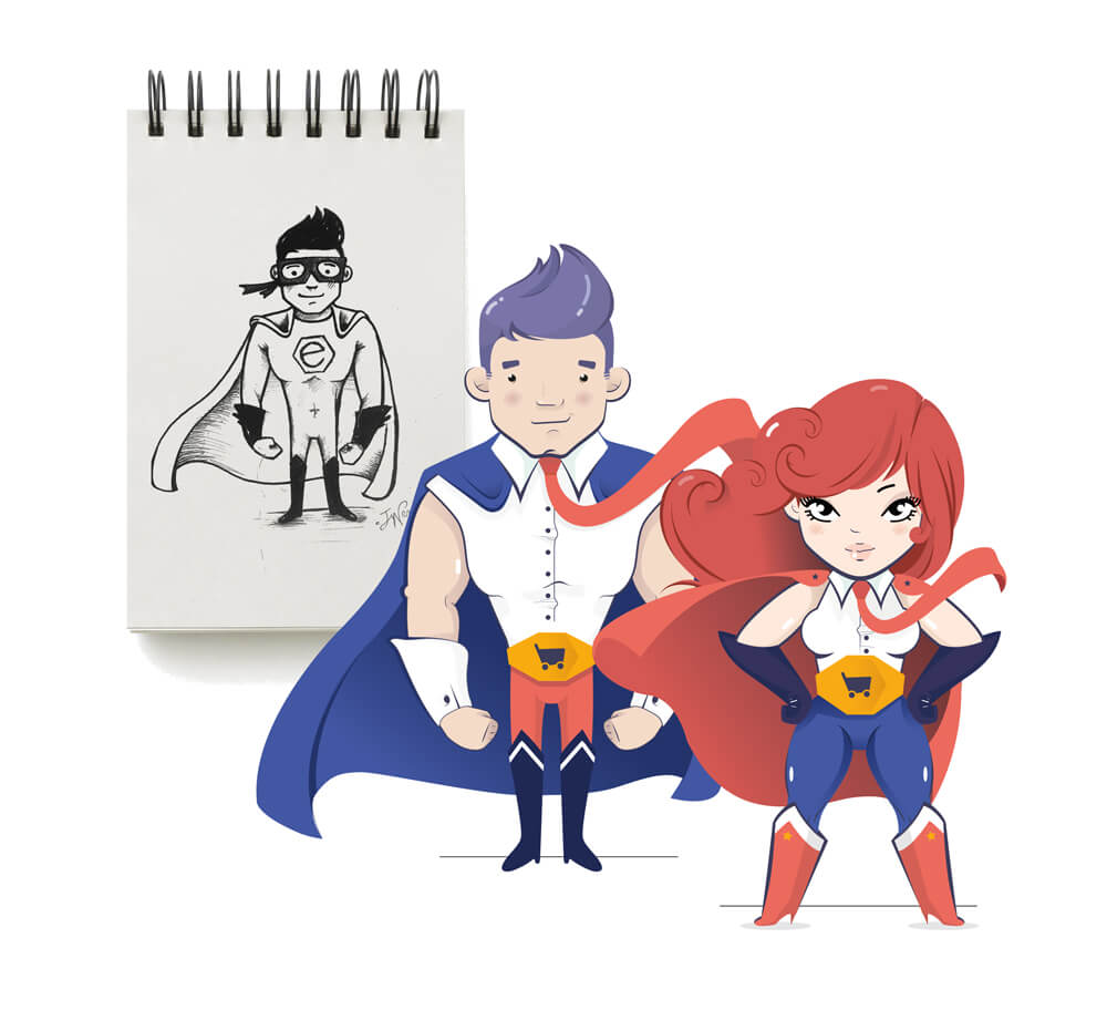 Per avvicinare gli utenti al concetp di Ecommerce Heroes serve appunto un eroe, una mascotte che possa coinvolgere i possibili clienti.