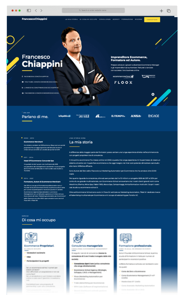 Francesco, imprenditore ecommerce, formatore ed autore nonchè esperto del settore, ha voluto un sito web professionale e d’impatto che si distinguesse sul mercato digitale.