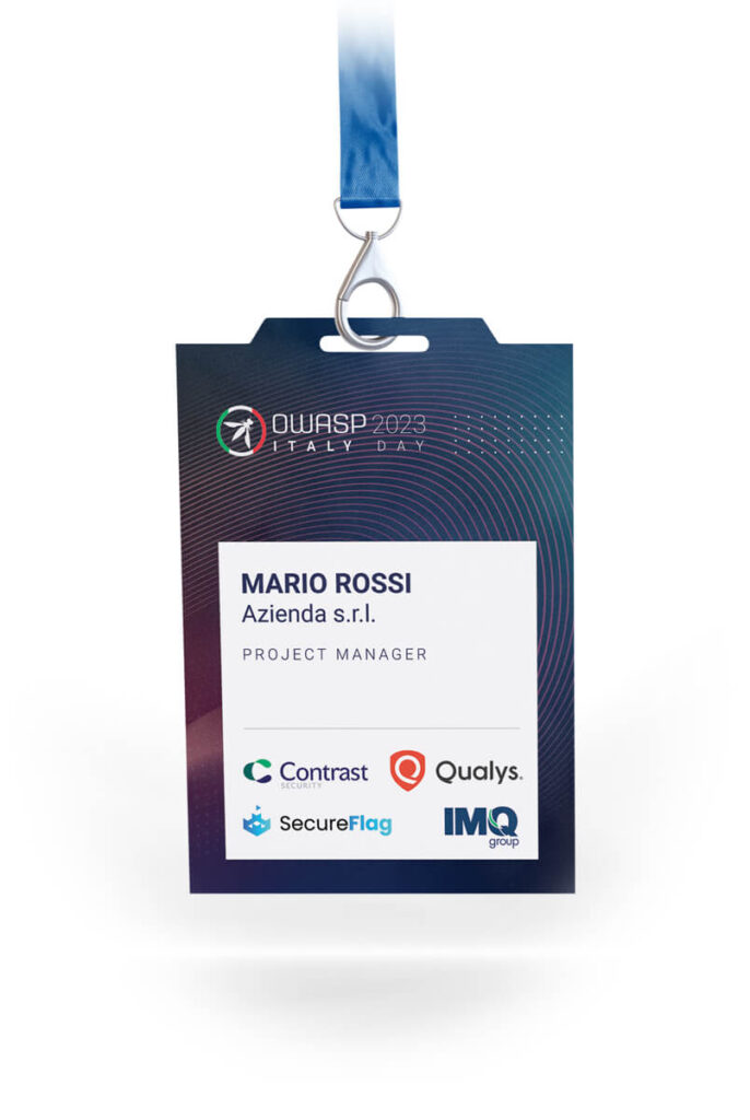 In meeting importanti come l’Owasp 2023 Italy Day, ogni cosa va curata nei minimi dettagli, dalle grandi stampe al merchandising. Anche i badge per lo staff e per i relatori diventano un mezzo per comunicare affidabilità e professionalità. La cura dei particolari rifletterà quella impiegata nei servizi svolti.